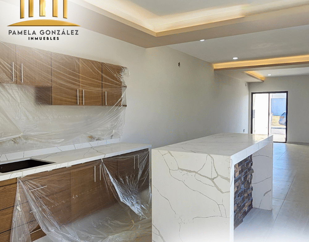 Cocina integral con barra, parrilla, campana y amplia alacena